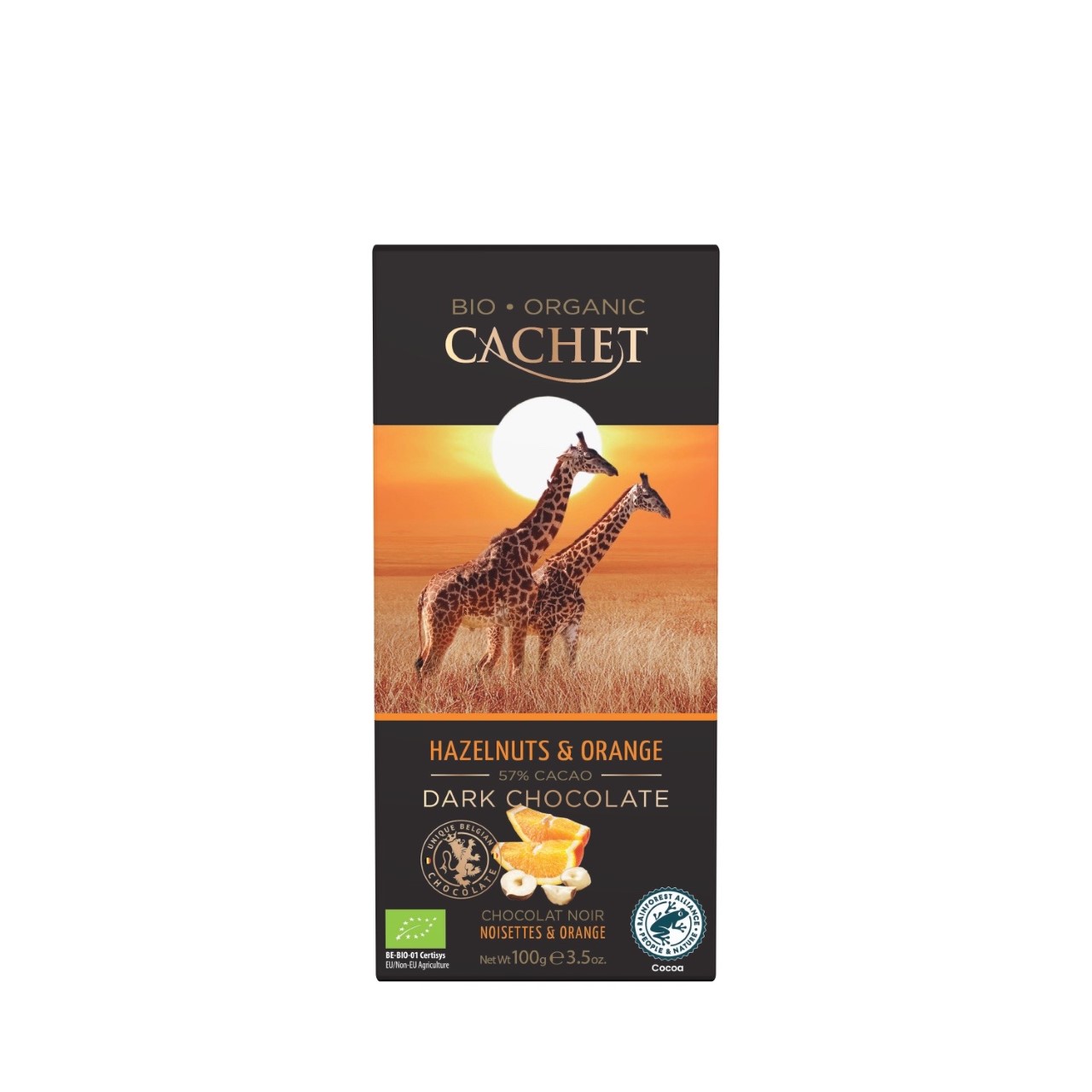 CACHET Dark Chocolate with Hazelnuts & Orange - Organic 57% Cocoa